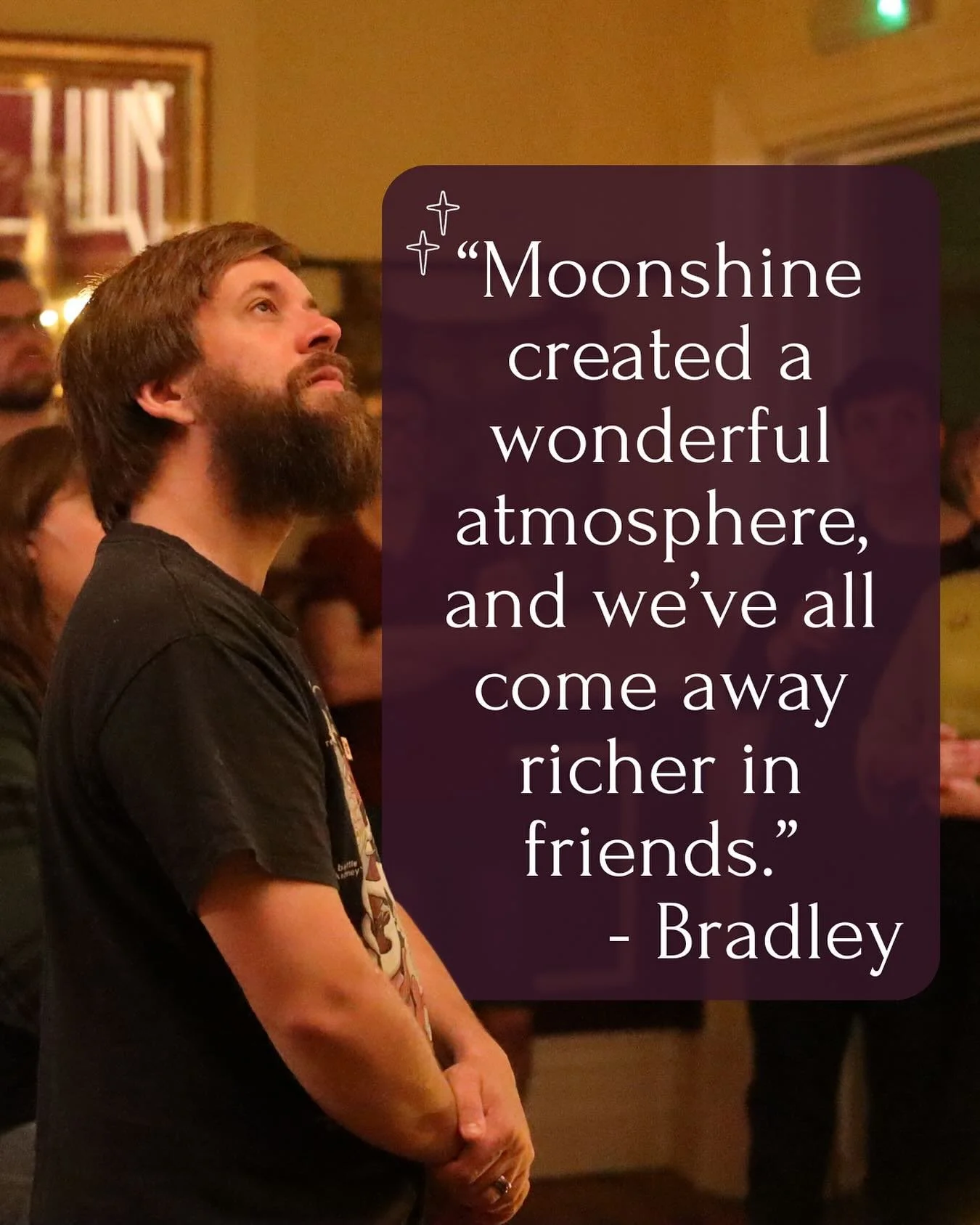 “Moonshine created a wonderful atmosphere, and we’ve all come away richer in friends.”