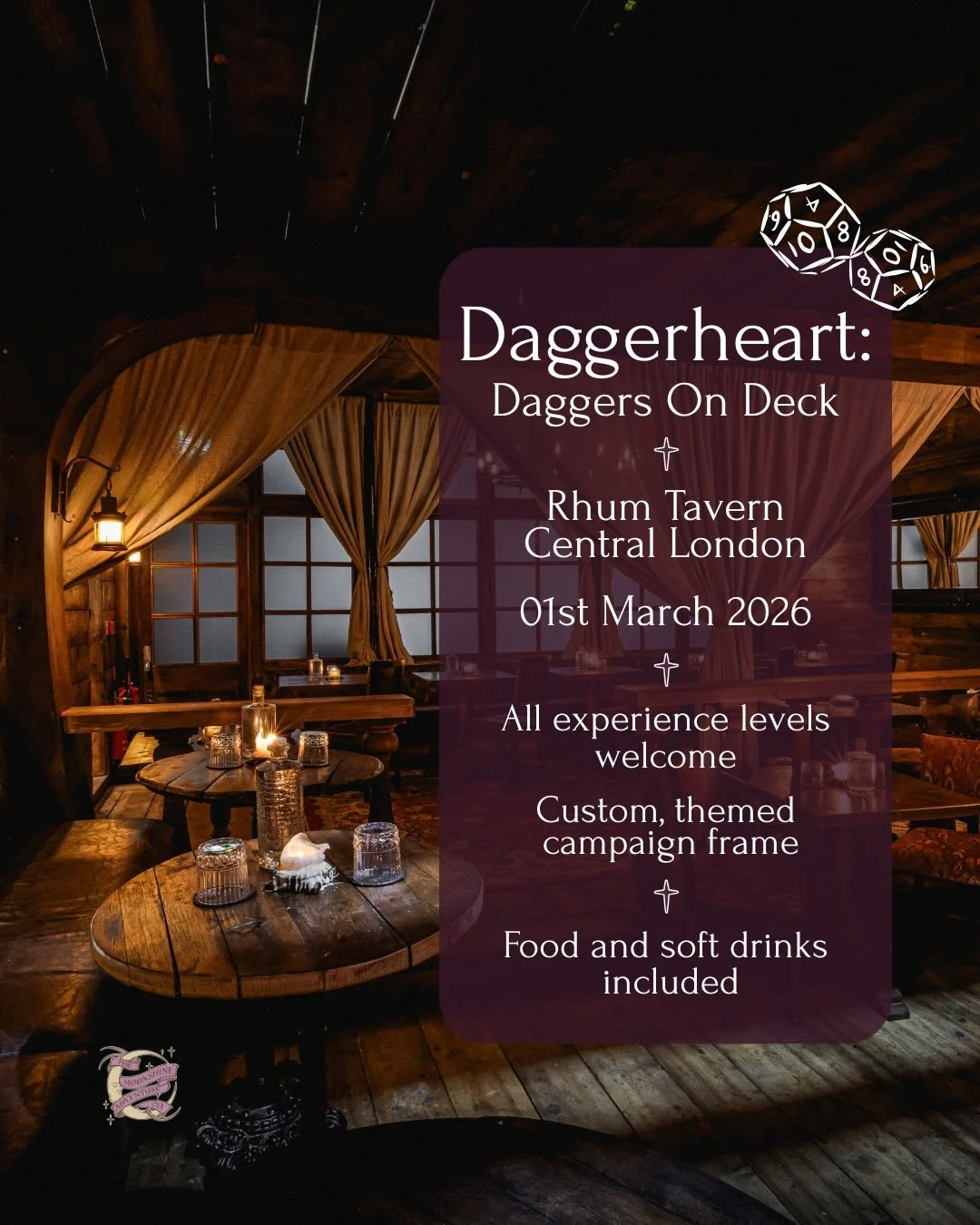 Join our swashbuckling one-day Daggerheart Adventure at the Rhum Tavern - a Central London bar styled as a 17th Century pirate ship.